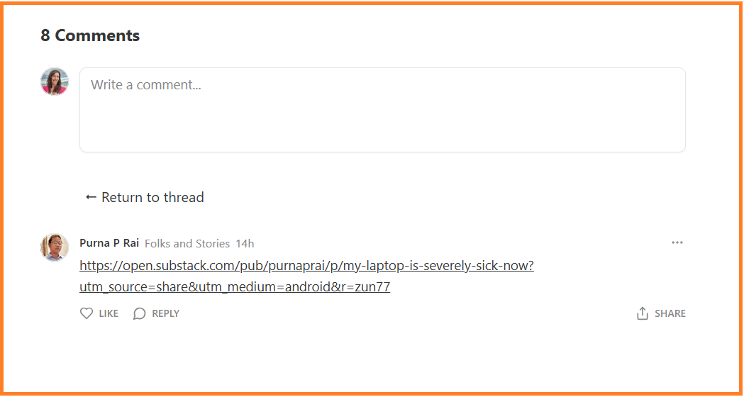 There’s no need to drop links to your publication either. Everywhere you show up in Substack, whether that’s in Notes replies or comments or direct messages, you are accompanied by a link to your profile and (often) a link to your publication too.